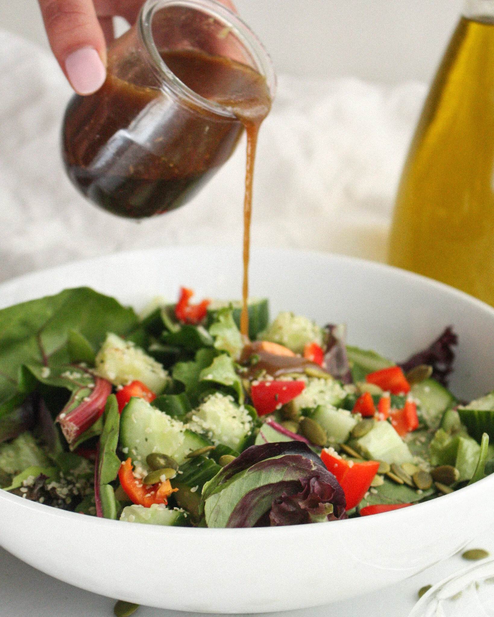 This is one of my go to recipes for lunch or dinner and it’s so easy to make! I love pairing this salad with a protein like chicken and a carb like sweet potatoes to complete the meal!